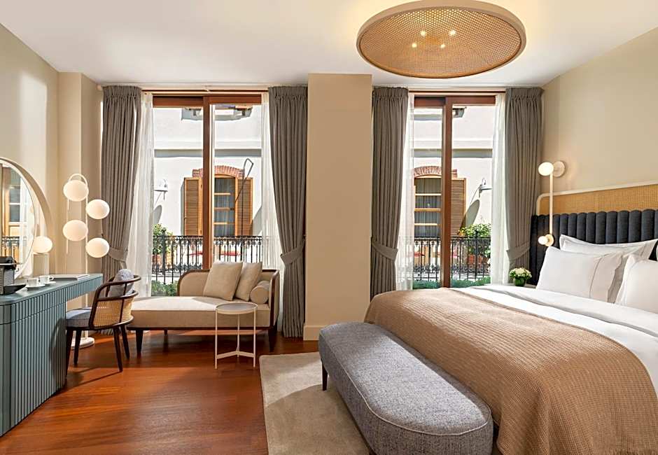 Room choices range from Deluxe and Superior Deluxe to spacious suites. Notable options include the Galata Suite, Bathtub (700 sqft) with a king bed and sofa bed, and the Historical, King, Balcony (431 sqft) also featuring a king bed plus sofa bed. Other accommodations offer garden views, balconies, or terraces, with features such as extra-long beds over 6.5 feet, soundproofing, air conditioning, free toiletries, and a mix of king, queen, or twin configurations.