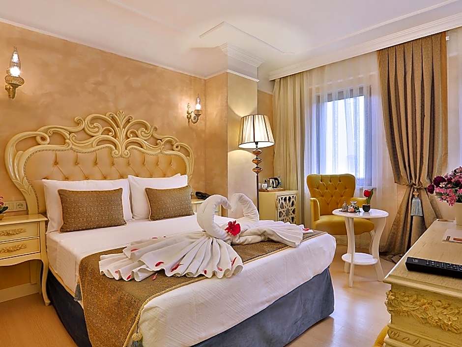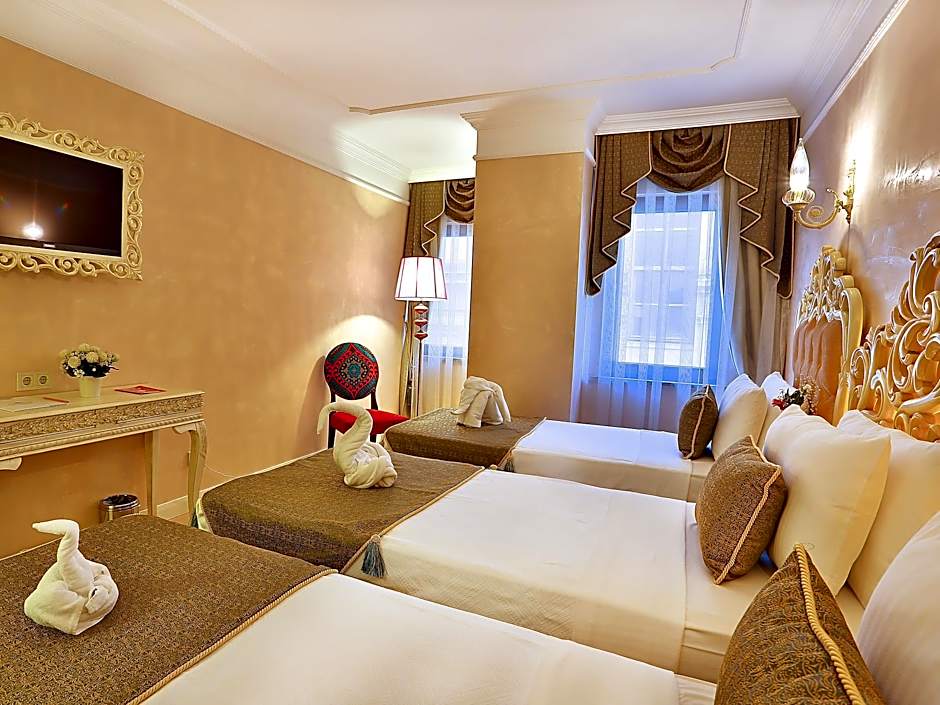 Edibe Sultan Hotel offers a variety of room types including Superior Triple, Superior Double or Twin, Two-Bedroom Connecting Family Suite, and Quadruple Family Room. These rooms range in size from 194 to 388 sqft and can accommodate between 2 and 4 adults, with an additional child. Smoking is not allowed in any of the rooms. The beds in the rooms vary, with options including twin beds, double beds, and queen-size beds.