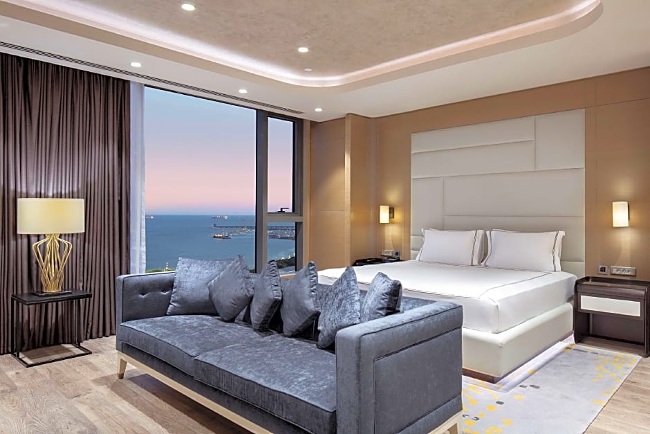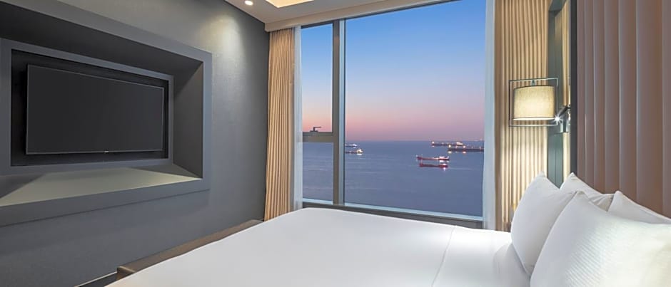 Featuring floor-to-ceiling windows and panoramic sea view, this room comes with air conditioning and a safety box. You will be provided with WiFi access, 47-inch TV, ironing facilities and a movable desk. A walk-in shower and a bathtub are available in the private bathroom.