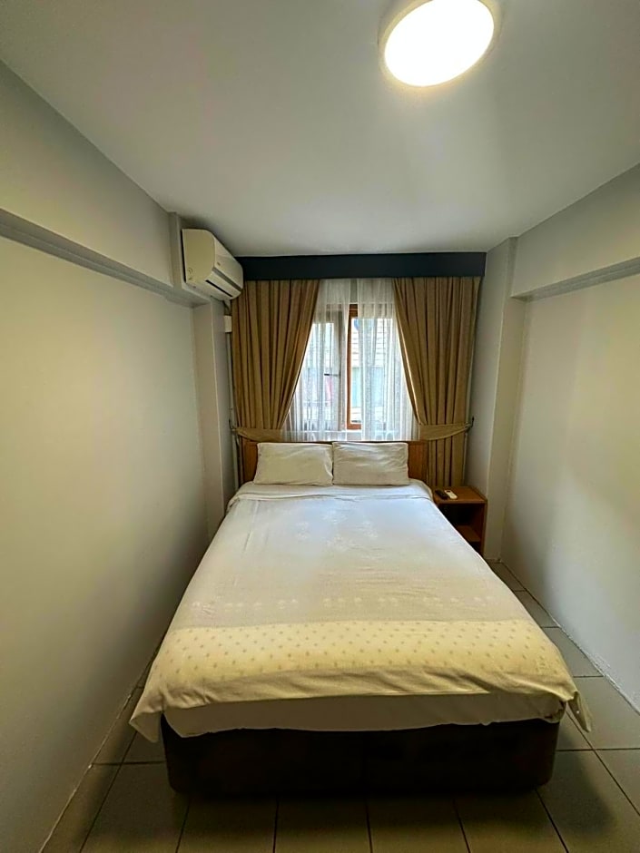 This is a no frills old style hotel ( they still have room keys with a chunky keychain attached). Rooms are small but efficient - a big bed and a small cupboard. The bed was surprisingly comfortable and immediate hot water. If you need a cheap place to crash in a top location ( next to GrandBazaar-tramway station), this is the best value for money place. It's Istanbul-you're not gonna spend your day inside a hotelroom. The pics on the booking.com site are pretty accurate.