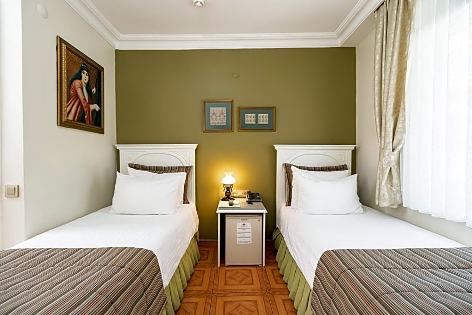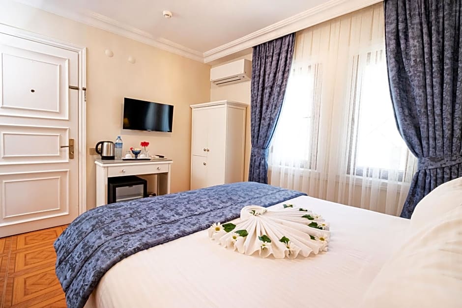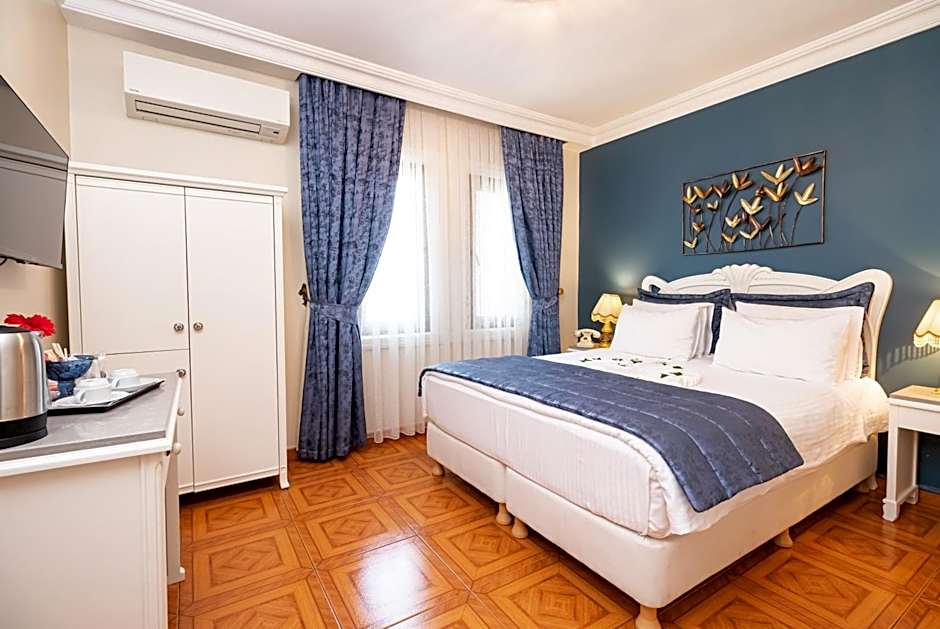 Located at the top floor with uninterrupted views of Hagia Sophia and the old city, this room has a bedroom and a spacious living room. Bathroom comes with a spa bath. Living room has Hagia Sophia, Blue Mosque and sea views. Air conditioning, mini-bar, make-up desk, wardrobe, LCD TV with satellite channels, hairdryer and towels are offered.