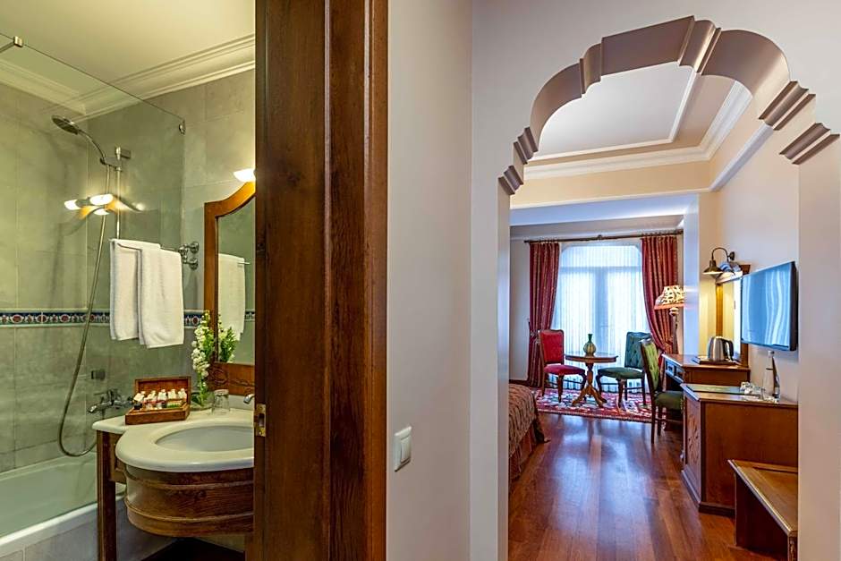 Immerse yourself in luxury at Hotel Sultanhan - Special Category with features like a sauna, Turkish/Steam bath, and soundproof rooms. Whether you're traveling with family or solo, this hotel offers kid-friendly buffets, babysitting services (extra charges), and a sun deck with a stunning landmark view. Relax in style at this elegant hotel, perfectly equipped to make your visit to Istanbul unforgettable.