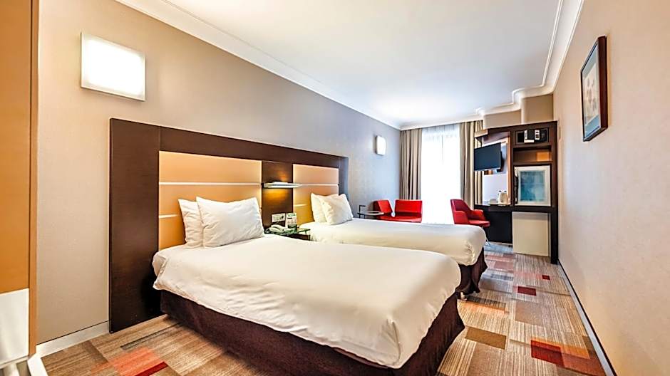 Twin Standard Room is 237 square feet and includes a king-size bed 150-183 width plus desk, hairdryer, safe, and slippers.