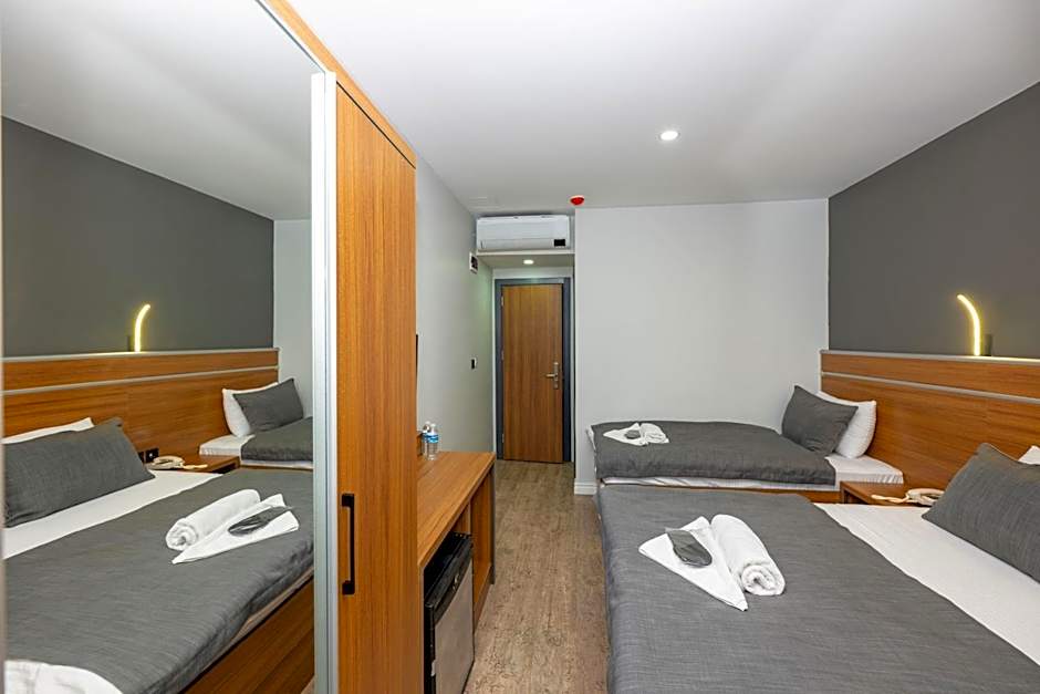 Mayza Otel offers a variety of rooms including Deluxe Double, Triple, Double, Comfort Triple, and Economy Single rooms. Occupancy ranges from accommodating 1 to 4 adults per room. All rooms are non-smoking and offer bed options such as Twin, Queen, and Double. Room sizes vary from 108 sqft for the Economy Single and Double Rooms to 323 sqft for the Deluxe Double Room.