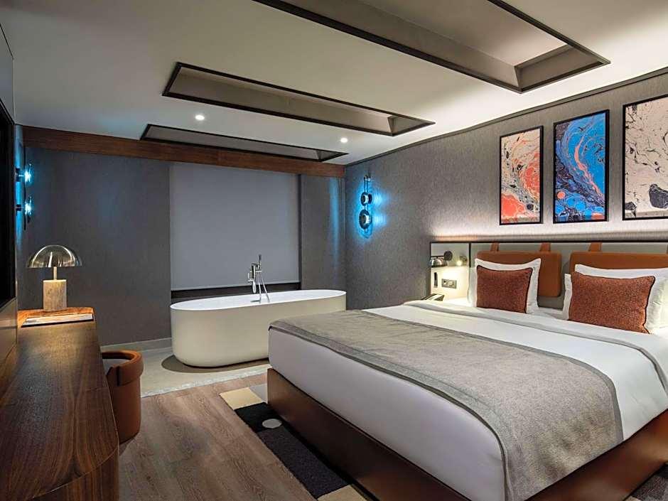 Modernly decorated, this spacious suite includes flat-screen satellite TV, seating area, working desk, laptop safe, tea and coffee making facilities and a mini-bar. It has a dressing room, and a private bathroom with a hairdryer and free toiletries. It also offers city views.