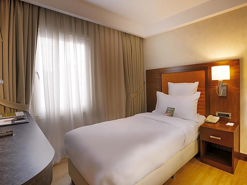 Bem-vindo ao Mercure Istanbul Bakirkoy, onde o luxo encontra o conforto no vibrante coração da capital cultural da Turquia! Situado a apenas 4,5mi do movimentado centro da cidade, esta joia de quatro estrelas é perfeita para aqueles que desejam explorar a rica história e os magníficos pontos turísticos de Istambul sem sacrificar a serenidade de um retiro boutique. Sua aventura começa com uma estadia a partir de apenas $64 por noite—uma pechincha para tais fabulosas comodidades!\n\nDelicie-se com um delicioso café da manhã para energizar suas explorações antes de mergulhar nas incríveis ofertas do hotel. Seja se divertindo na piscina interna, relaxando na sauna ou se presenteando com um tratamento de spa revigorante, cada momento no Mercure é sobre mimos. As famílias apreciarão a piscina infantil e o buffet amigável para crianças, enquanto os viajantes de negócios podem aproveitar o centro de negócios gratuito e as instalações para reuniões. As avaliações de hóspedes satisfeitos elogiam os quartos à prova de som, garantindo uma noite de sono tranquila após um dia de aventuras!\n\nO Hotel Mercure se destaca com seu design elegante e instalações modernas, incluindo WiFi gratuito e estacionamento privativo. Imagine saboreando sua bebida no bar ou desfrutando de uma caminhada tranquila no lindo jardim—este hotel realmente incorpora uma atmosfera relaxada, mas divertida! Com uma recepção 24 horas pronta para ajudar e uma central de turismo para ajudar a planejar suas saídas, faz com que cada hóspede se sinta especial e bem cuidado. Não perca a chance de experimentar a energia encantadora de Istambul do conforto do Mercure Istanbul Bakirkoy!