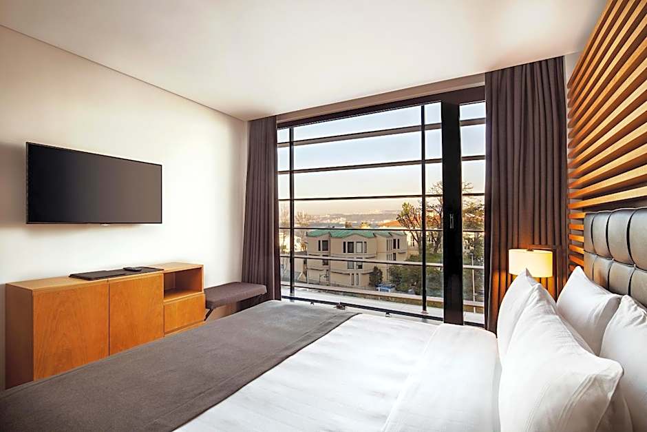 The reception staff was incredibly friendly, helpful, and knowledgeable. We stayed in a superior room, which was spacious and offered city views with a partial glimpse of the Bosphorus. The hotel's location was perfect, a couple of minutes away from Galataport, a hub of restaurants, cafés, and shops. It was also just 100 meters from the tram station, providing easy access to attractions like the Egyptian Bazaar, Hagia Sophia, Sultanahmet, and the Grand Bazaar. Don't miss their restaurant, Azure; it boasts a wonderful Bosphorus view, especially before sunset, and the food was delicious.