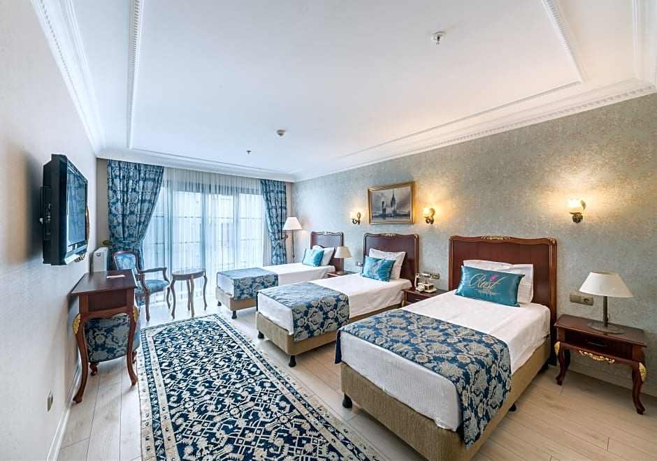 Rast Hotel Sultanahmet offers a variety of room types including Deluxe Triple Room, Deluxe Double Room, Deluxe Suite, Superior Double or Twin Room, and Deluxe Family Room. All rooms have balconies and are non-smoking. The occupancy ranges from 2 adults to 3 adults, with the option to accommodate 1 child. The bed sizes vary from twin beds, double beds, and queen-size beds. The room sizes range from 172 sqft to 431 sqft.