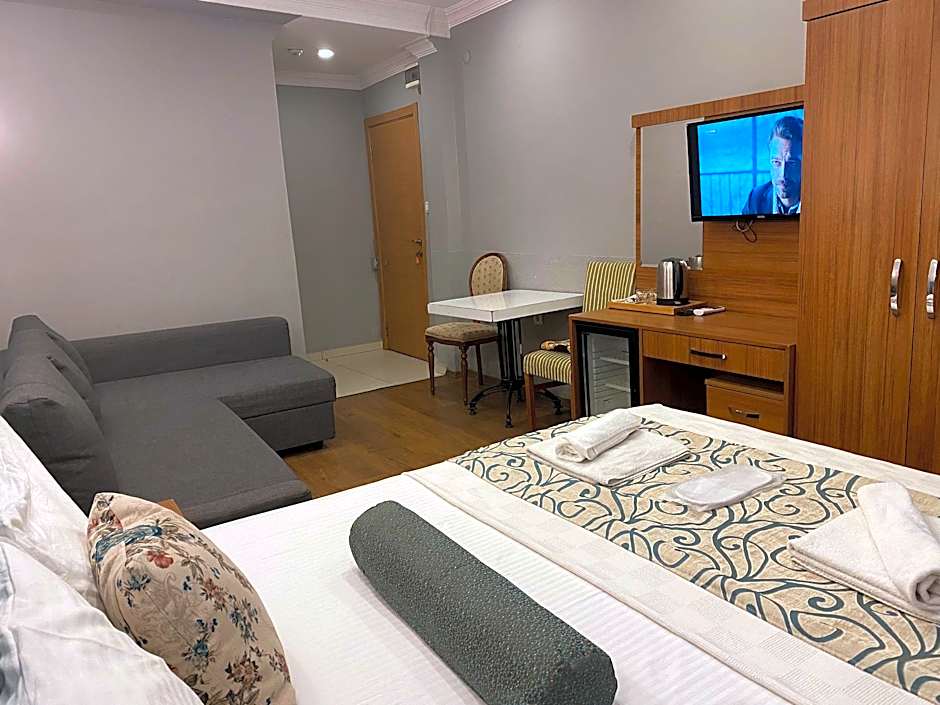 Riverland Suites Apart Hotel sits in Istanbul’s historic Sultanahmet district, about 1,3mi from the city center. Free Wifi keeps browsing easy, and a 24-hour front desk along with air conditioning and a private entrance ensure comfort at any hour. Non-smoking rooms, a garden, kitchenware, and a kitchenette add homey touches, while free toiletries and soundproof rooms help guests unwind in peace. For those arriving by car or needing a transfer, private parking, shuttle service, and airport shuttle are available for an additional fee.