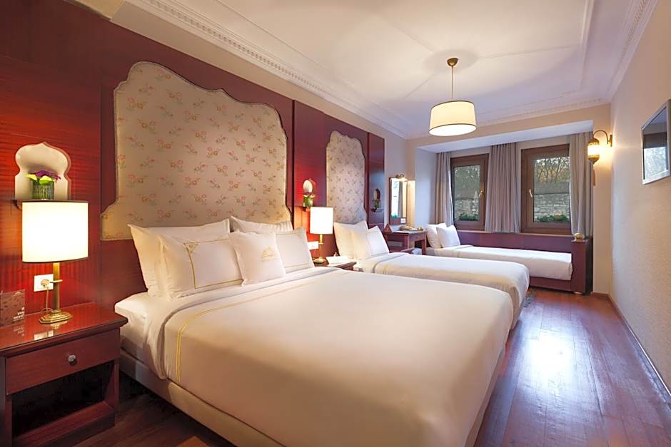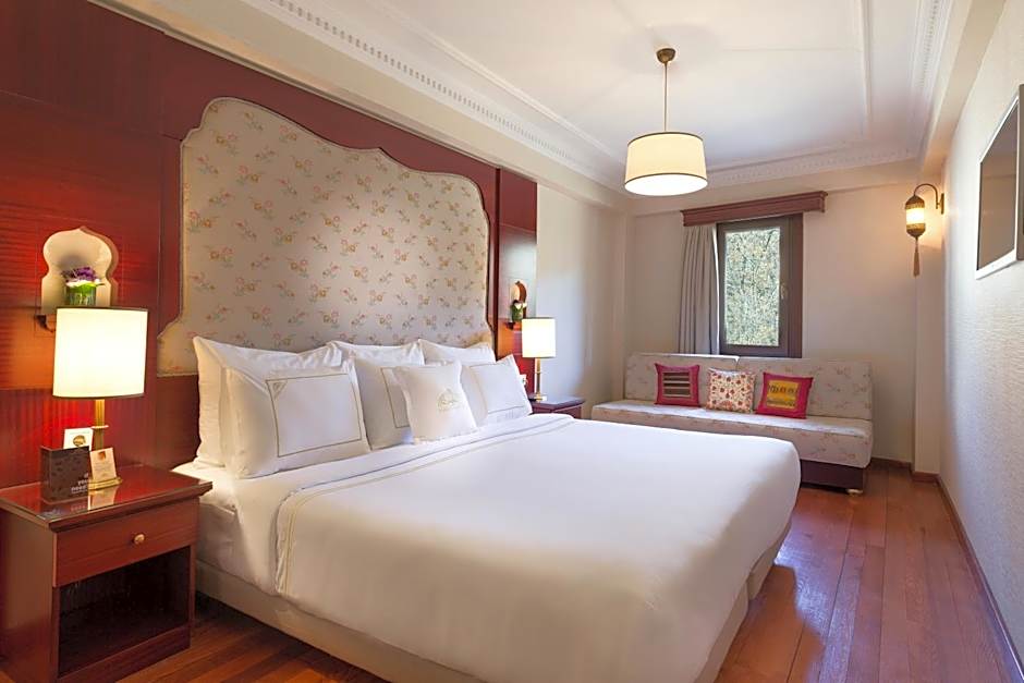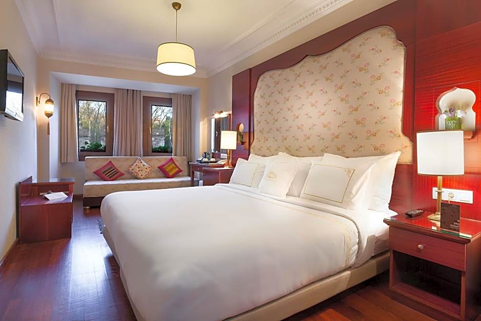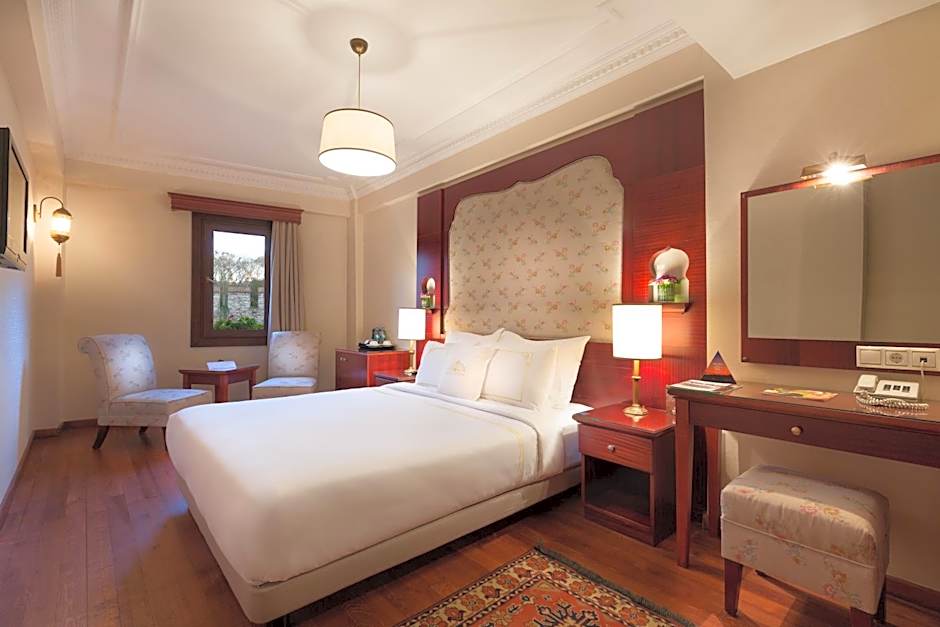 Featuring a spacious balcony with Gulhane Park view, king-sized bed and air conditioning, this 98 ft² room is located on the top floor. It includes a flat-screen TV with satellite channels, espresso machine, electric kettle, central heating,safe box and a mini-bar. Private bathroom comes with a spa bath, bathrobe and a hairdryer. Free WiFi, complimentary bottle of water and pillow menu are also offered in this room type.