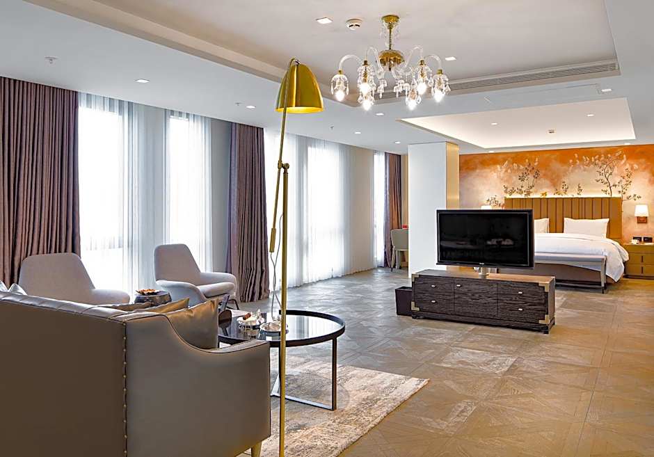 This suite's standout feature is the sauna. Offering free toiletries and bathrobes, this suite includes a private bathroom with a bath, a shower and a bidet. The suite's kitchenette, which features a refrigerator and an electric kettle, is available for cooking and storing food. The spacious air-conditioned suite offers a flat-screen TV with cable channels, soundproof walls, a mini-bar, a seating area as well as city views. The unit offers 2 beds.