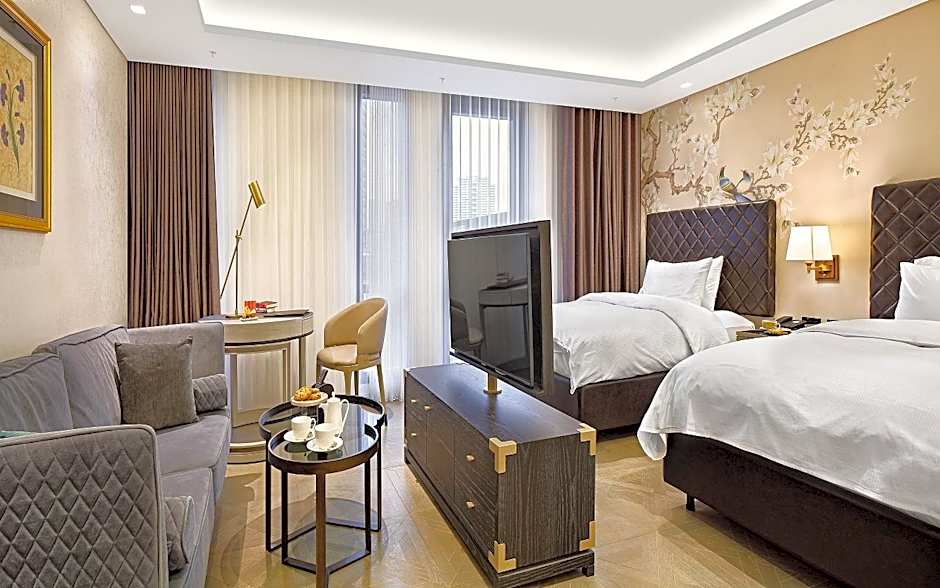 Providing free toiletries and bathrobes, this suite includes a private bathroom with a shower, a bidet and a hairdryer. The spacious air-conditioned suite provides a flat-screen TV with cable channels, soundproof walls, a mini-bar, a seating area as well as city views. The unit offers 2 beds.