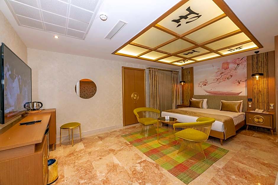 The Wyndham Istanbul Old City hotel offers a variety of rooms including suites, doubles, triples, quadruples, and family rooms. All rooms have jacuzzis, and smoking is not allowed. The occupancy ranges from 2 adults with 1 child to 6 adults with 5 children. The bed sizes include twin, double, queen, and king. Room sizes range from 194 sqft to 1055 sqft. The hotel also offers a Duplex Suite with a jacuzzi and a Connection Family Room.