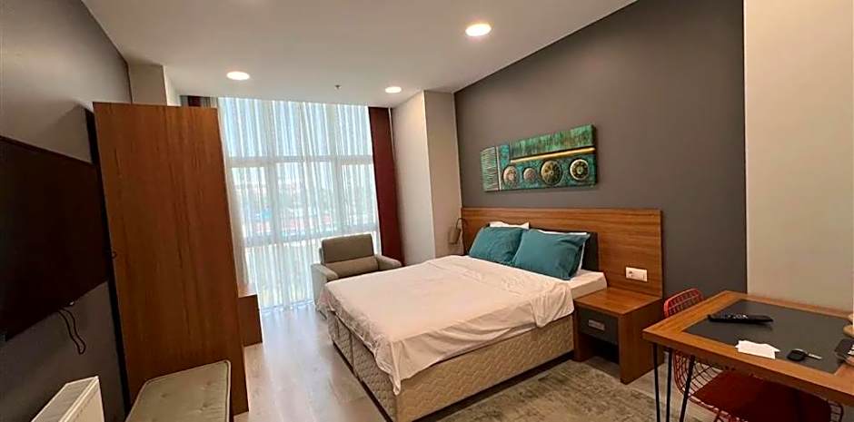 Zin D Home Dudullu Suits offers Apartments and Superior Studios. The Apartments have a room size range of 463 to 570 sqft, accommodating 2 adults and 1 child, with a double bed and a sofa bed. Smoking is not allowed in these rooms. The Superior Studio is 344 sqft, accommodating 2 adults in a double bed, and smoking is also not allowed.