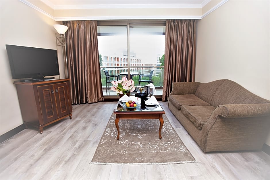 Deluxe includes a king-size bed 150-183 width plus balcony, satellite tv , hairdryer, safe, bathrobes, and slippers and is Wheelchair-accessible.
