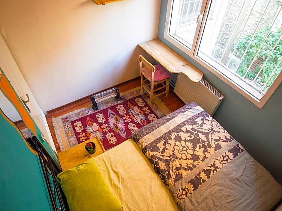 Nice hostel vibe with common living room with books and (roof) terrace. Good to get to know other travellers. Great location in trendy Alsancak. Very well equipped kitchen (vegetarian only). Donation-based vegetarian breakfast. Washing machine available for a small fee.
