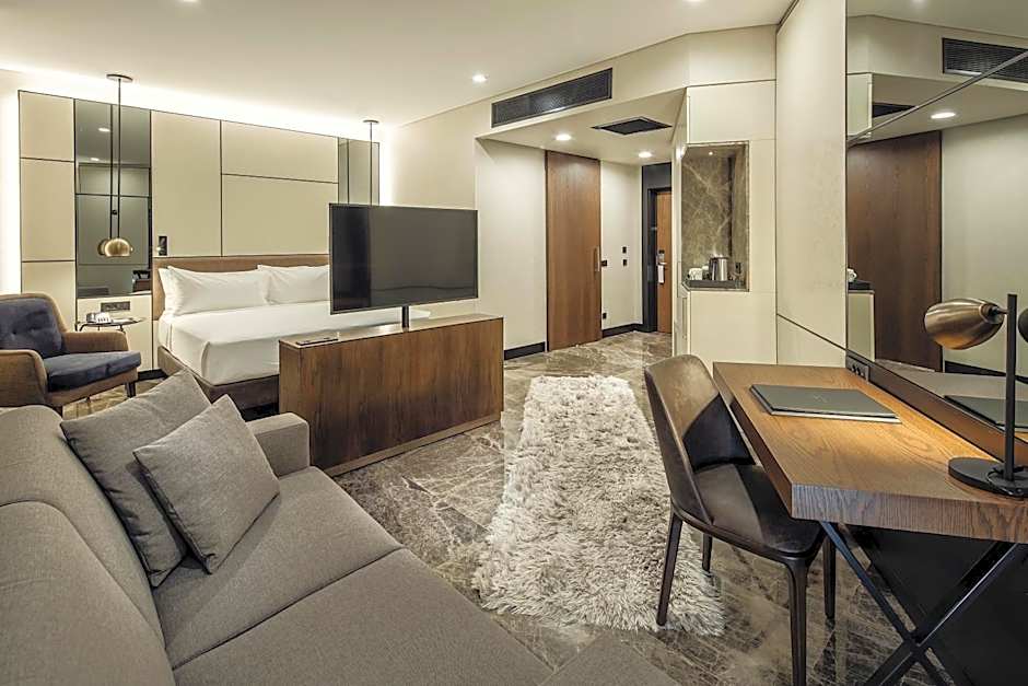 KING ONE BEDROOM CORNER SUITE, COMP WIFI/SEP LIVING ROOM W/DINING TABLE/SOFA, 58 SQM/IRON AND BOARD/LAPTOP SAFE/MINI FRIDGE
