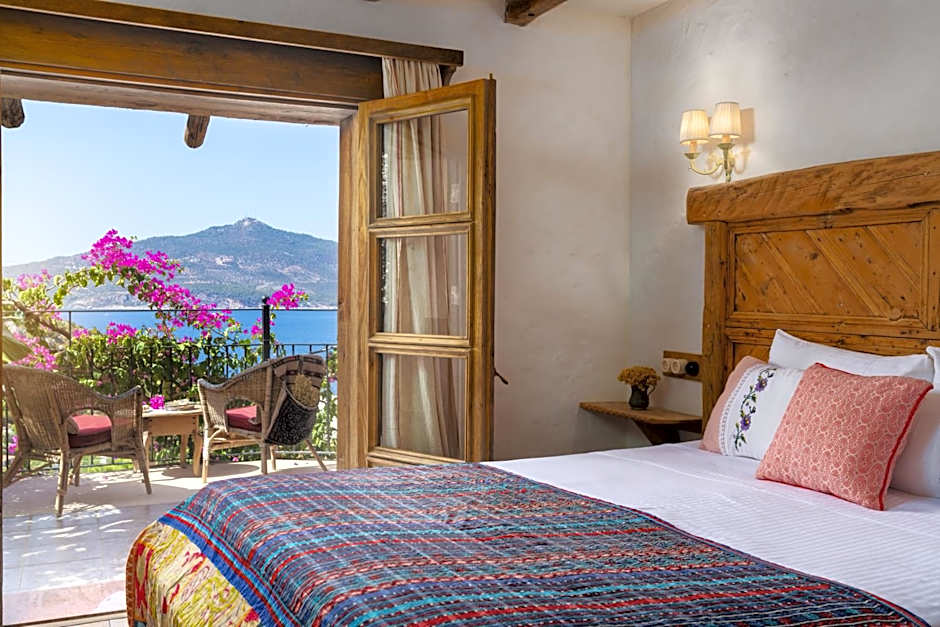 Decorated in nature colors, this double room features a balcony, satellite TV and mini-bar. It also offers sea views. These deluxe rooms can accommodate up to two guests and are 30 sqm each. Centuries old cedar and antiques were used to furnish our deluxe rooms and all have terraces with beautiful sea views.