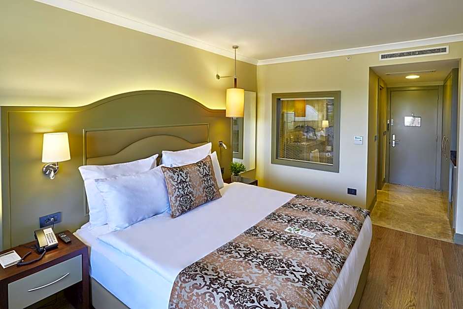 This hotel isn’t just about the pools; it’s a full-on sanctuary of comfort and entertainment. From free WiFi and room service to a fitness center and live music performances, everything is designed to elevate your stay. For those who want to pamper themselves, the spa offers invigorating massage treatments, while the sun deck and terrace beckon for lazy afternoons under the Turkish sun. Families will appreciate the kid-friendly buffet, playground, and kids’ club, all in a setting that’s as welcoming as it is stylish, with soundproofed rooms ensuring you rest peacefully.