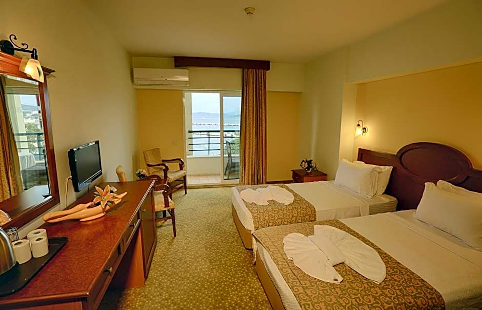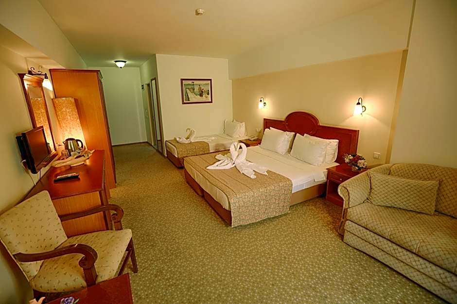 Great for travelers, the hotel features free on-site parking, free WiFi, a restaurant, and a kids' pool, with air conditioning and a free fitness center. Rooms boast balconies or terraces, soundproofing, and garden views, plus a sun deck and access to beach umbrellas and chairs. Convenience is enhanced by a 24-hour front desk, elevator, non-smoking rooms, room service, and complimentary toiletries; shuttle service and Turkish/Steam Bath are available for an extra charge.