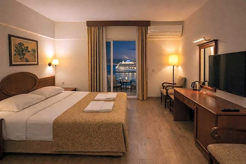 Providing free toiletries and bathrobes, this twin/double room includes a private bathroom with a shower, a hairdryer and slippers. The spacious air-conditioned twin/double room provides a flat-screen TV with satellite channels, a mini-bar, a tea and coffee maker, a seating area as well as sea views.