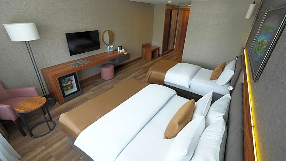 Providing free toiletries and bathrobes, this triple room includes a private bathroom with a shower, a hairdryer and slippers. The spacious air-conditioned triple room provides a flat-screen TV with cable channels, soundproof walls, a mini-bar, a tea and coffee maker as well as garden views. The unit offers 2 beds.