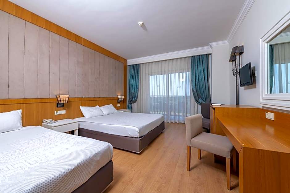 This five-star retreat in Manavgat sits on Titreyengöl Caddesi, just about 1,3 mailia from the city center. Views include lake, river, mountain, or garden, and a private beach area with a waterslide adds splash-ready fun to the stay. The lakeside-and-riverside setting promises an Ultra All Inclusive escape with plenty to explore on site.
