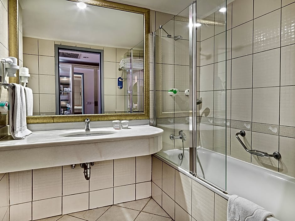 DOUBLE SINGLE USE CLUB is 334 square feet and includes either 2 single beds 80-130 width or a double bed 131-150 width plus a sofa bed and has a Disability-friendly bathroom.