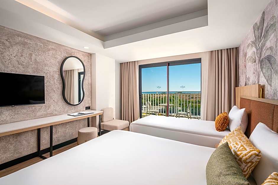 VOX MARIS RESORT is a 5-star hotel in Manavgat, Turkey, located about 2,4 миль from the city center. Address: 508. Sokak No 1. A lively lineup of amenities centers on sun, sea, and wellness: a water park (free), a private beach area (free), outdoor and indoor swimming pools (free), and an adults-only vibe, complemented by complimentary Wifi. Other highlights include a fitness center (free), Turkish/Steam Bath (free), meeting/banquet facilities (free), a waterslide, a sauna (free), and a terrace for sunset strolls.