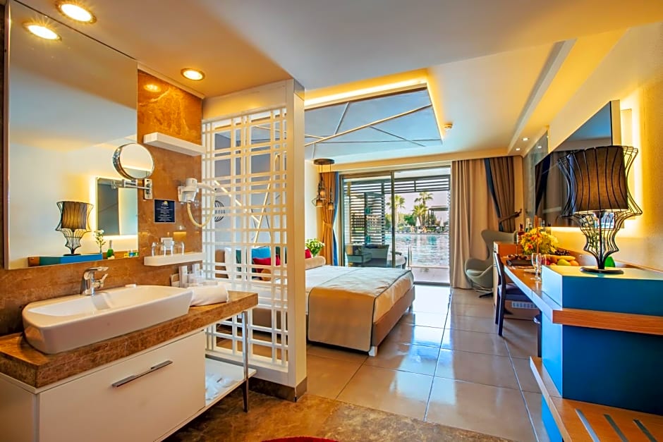 Convenience meets luxury at Sherwood Blue Belek - Adults Only, with amenities like free WiFi, private parking, and air conditioning provided for your comfort. Whether you choose to enjoy a cocktail at the bar, take in picturesque views from the sun deck, or receive top-notch service from the 24-hour front desk, this resort has everything you need for a dreamy Turkish getaway. Embrace serenity and decadence in equal measure at this top-rated resort, where relaxation and upscale experiences seamlessly blend to create a memorable vacation for every guest.