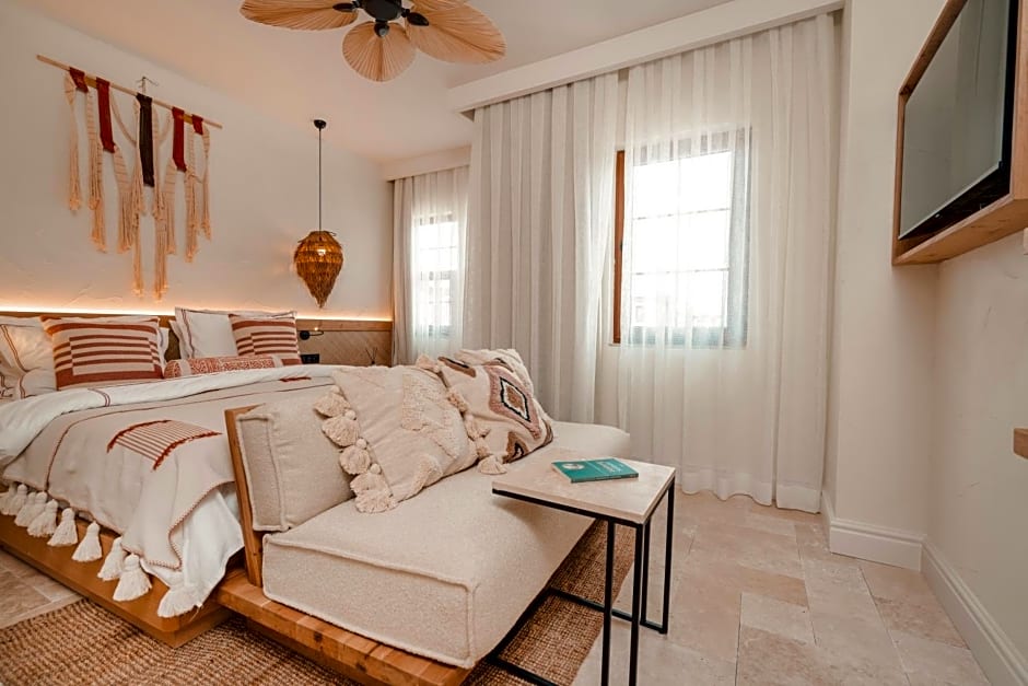 Extras such as extra-long beds (> 6.5 ft) and soundproof rooms accompany the stay, with beach chairs/loungers (extra charges) and a bar adding to the Riviera vibe.