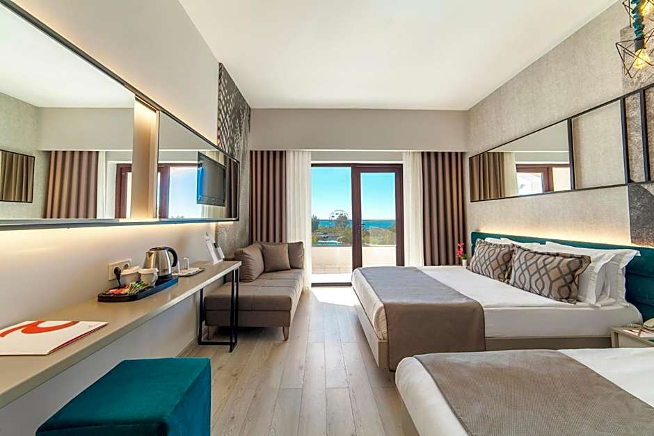 Welcome to Club Hotel Turan Prince World - Kids Concept in the vibrant city of Side, Turkey! This 3-star hotel is a traveler's paradise with its wide array of amenities and a beachfront location. Located at Kızılağaç Turizm merkezi, No:77, the hotel offers easy access to the city center, just 8.1mi away.