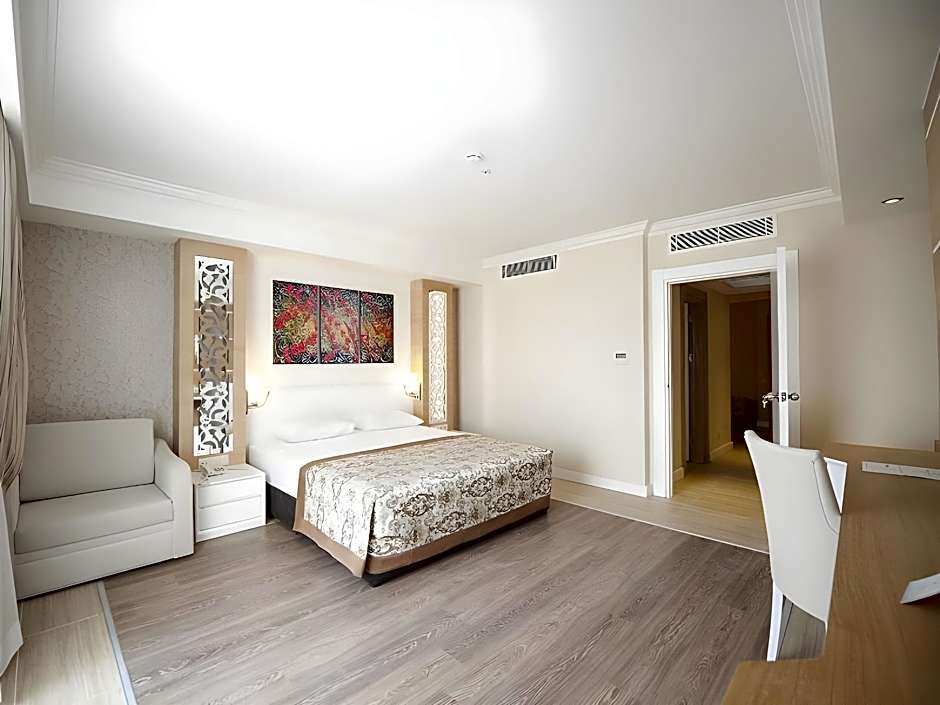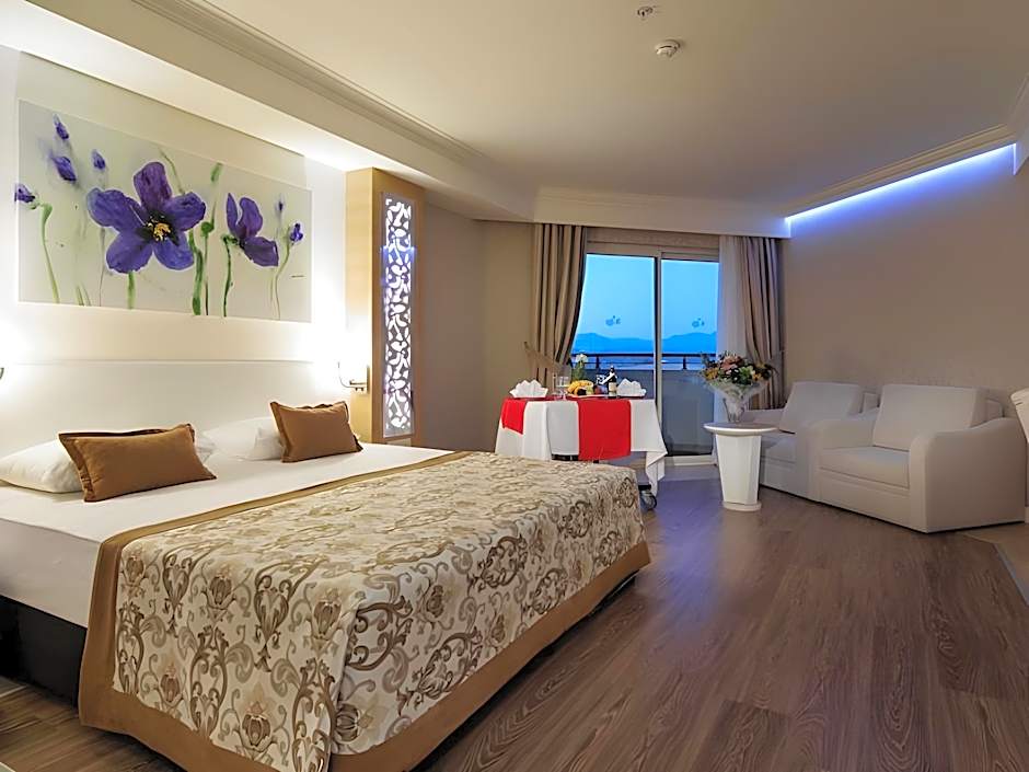 Featured amenities include a water park (free), kids' club (free), private beach area (free), indoor and outdoor swimming pools (free), private parking (free), and wifi (free). Also available are room service, a fitness center (free), Turkish/Steam Bath (free), and sauna (free), plus a tennis court (free), kid-friendly buffet, bar, sun deck, and terrace. Ocean view and garden view options are offered, along with non-smoking rooms, balconies, and soundproof rooms.