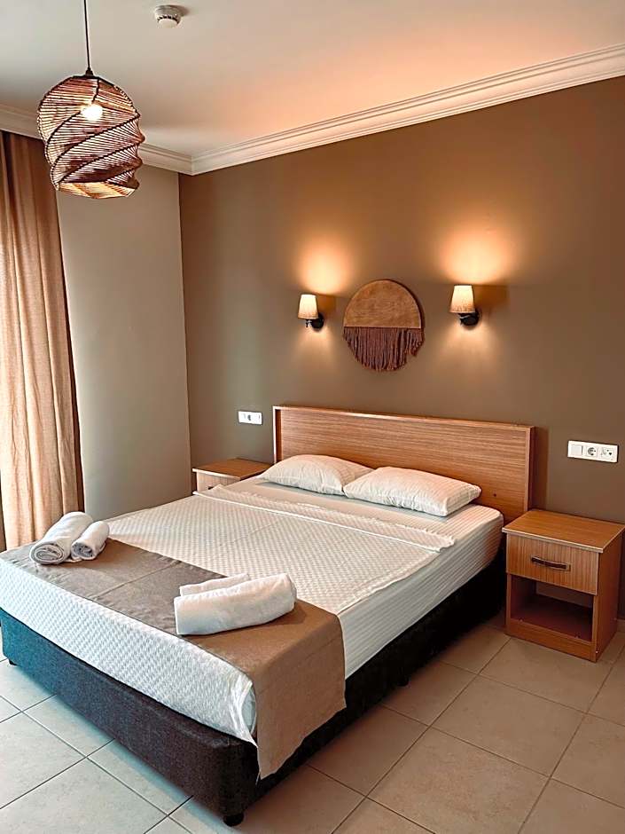 We stayed at Kalia Beach Hotel Side as two families—ours with 4 people and our relatives with 5, booking 4 rooms in total. From the moment we arrived, the hotel staff went above and beyond to ensure our stay was comfortable. They helped us find the most convenient room combination for our group, which made a big difference. A special thanks to Mr. Arslan, the hotel manager. He is a true professional with deep experience in tourism—he manages the hotel effortlessly and anticipates every guest’s need before they even say a word. The hotel mainly consists of one-floor rooms, with a few rooms on a second level. Those upper-floor rooms can get warmer, but all are equipped with well-functioning air conditioning. We also loved the little seating areas and sun loungers right outside each room—perfect for relaxing together in the evenings. The beach is just a few steps away, and it's fantastic—shallow, calm, and safe for children. You can also enjoy fun water activities like parasailing and jet-skiing nearby. The location is another huge plus: walking distance to historic Side, with its beautiful ruins, restaurants, and nightlife. If you want peace and quiet or a fun night out, both are easily accessible. The hotel’s restaurant is also worth mentioning. The service is excellent, thanks especially to Ali, the head waiter. He’s incredibly experienced, and things run like clockwork under his care.