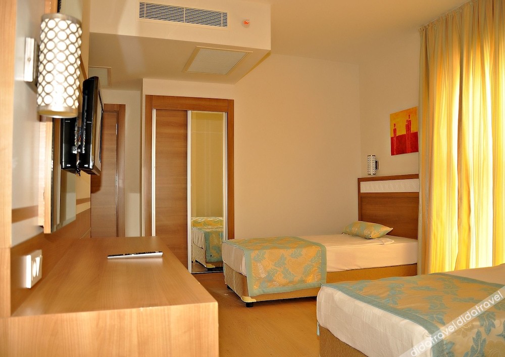 Merve Sun Hotel & SPA offers a variety of rooms such as Standard Family, Family, Standard Triple, and Standard Double or Twin rooms. Occupancy ranges from 2 adults and 1 child in Standard Double or Twin rooms to 4 adults in Family rooms. Smoking is not allowed in most rooms, except for the Standard Family Room. Bed sizes include combinations of Twin and Double beds, ensuring comfort for different guest needs.