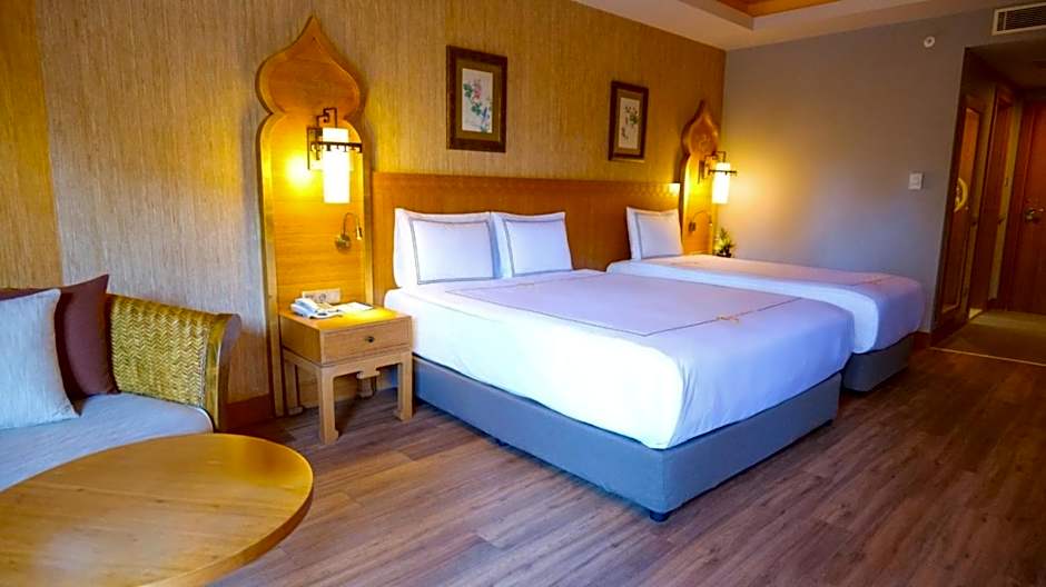 FAMILY DELUXE LAND VIEW is 646 square feet and includes either 2 single beds 80-130 width or a double bed 131-150 width plus balcony, satellite tv , hairdryer, tea and coffee making facilities , and safe and is Wheelchair-accessible.