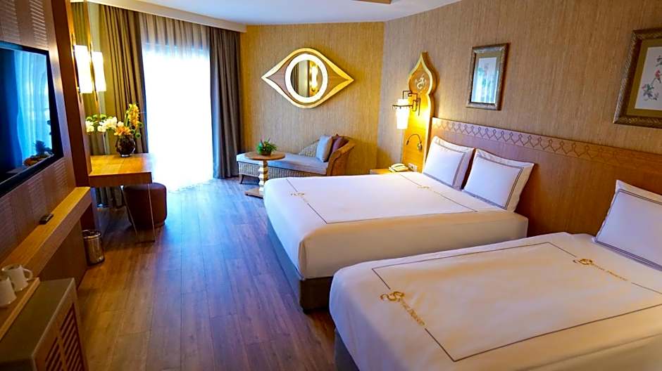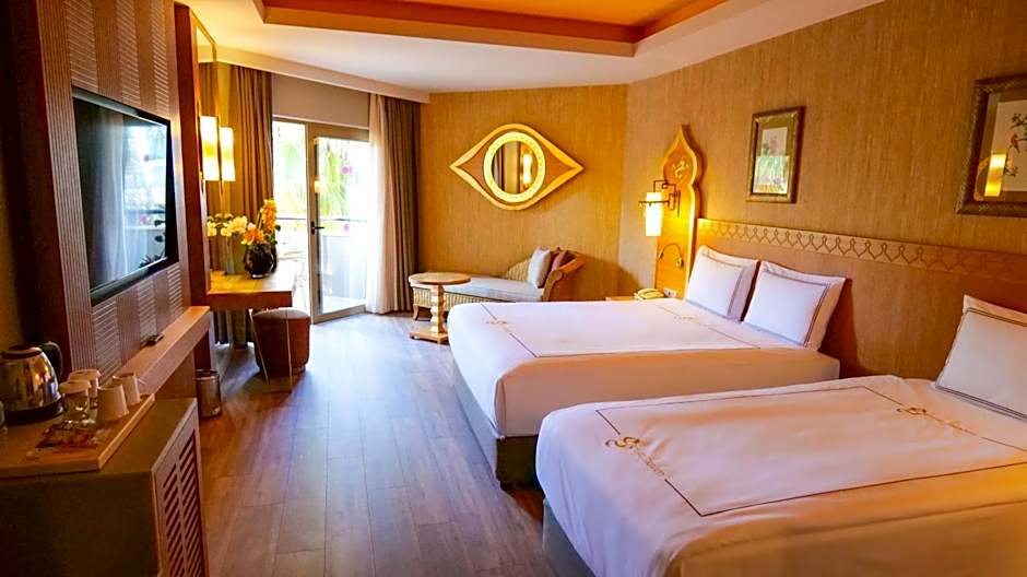 With rave reviews from past guests, you can trust that your stay at Royal Dragon Hotel will be nothing short of exceptional. Enjoy a plethora of amenities including free access to the water park, indoor and outdoor swimming pools, Turkish/Steam bath, sauna, and a complimentary kids' club to keep the little ones entertained. Plus, stay connected with free Wi-Fi, indulge in delicious meals at the on-site restaurant, and sip on refreshing drinks at the bar.