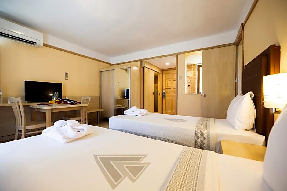 Guests can enjoy the convenience of free WiFi, parking on site, and a variety of dining options including a kid-friendly buffet and free kids' meals. The hotel boasts numerous entertainment options such as live music performances and a fitness center. The rooms are designed with comfort in mind, featuring air conditioning, private bathrooms, soundproofing, and balconies offering stunning views of the Mediterranean Sea. The hotel also offers wheelchair accessible accommodations for guests with special needs.