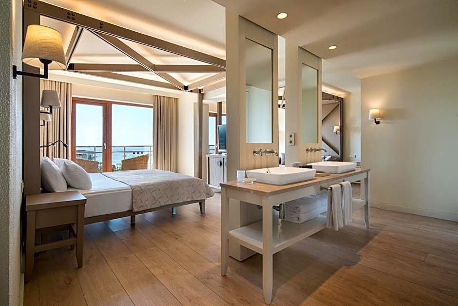Providing free toiletries and bathrobes, this double room includes a private bathroom with a shower, a bidet and a hairdryer. The spacious air-conditioned double room provides a flat-screen TV with satellite channels, soundproof walls, a mini-bar, a tea and coffee maker as well as sea views. The unit offers 2 beds.
