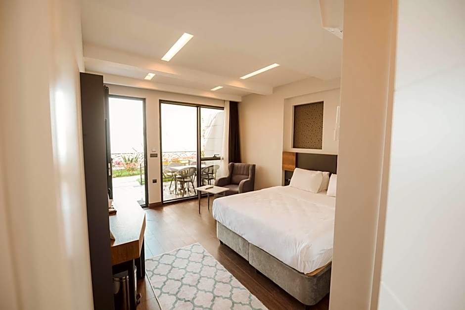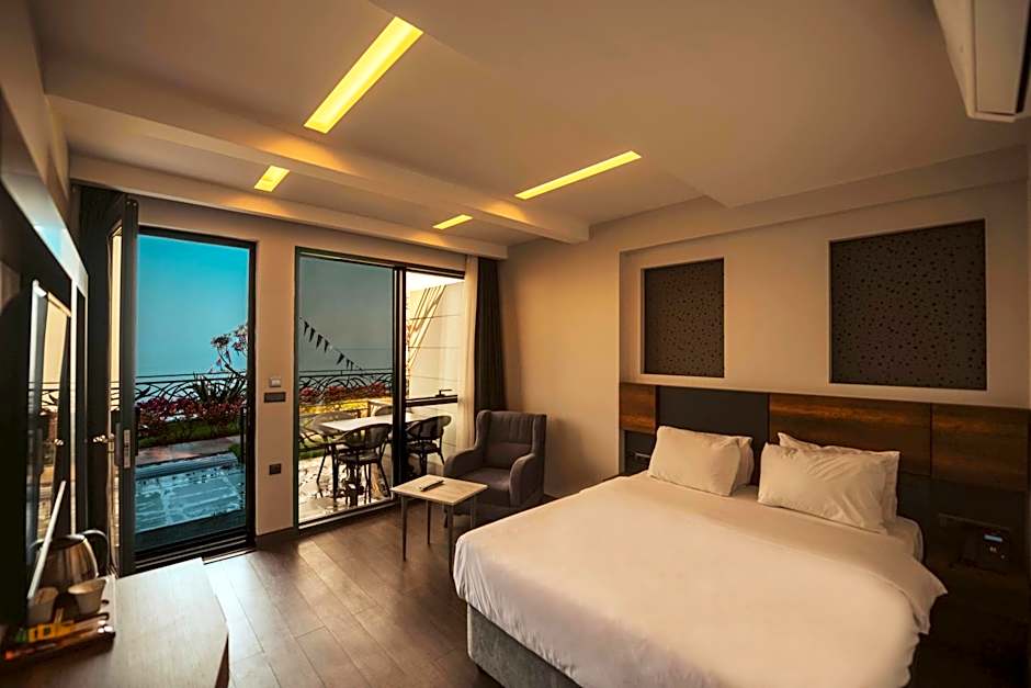 A varied range of suites and rooms offers sights of the sea or gardens, with options featuring private terraces or balconies. Many arrangements boast a private jetted tub, a fireplace, or expansive layouts to suit couples, groups or families. Notable examples include Akyazi Suite with Sea View and Jetted Tub; Peerless Suite with Jetted Tub; Trapezus Suite with Garden View and Fireplace; Suvva Suite with Balcony and Jetted Tub; and Rooftop Suite with Sea View and Jetted Tub.