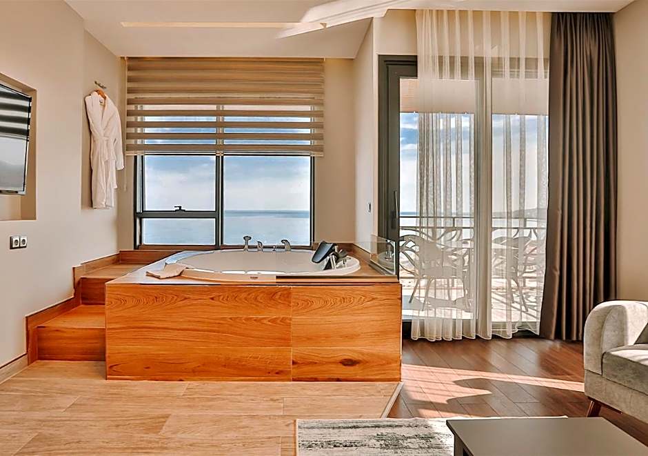 Guests will have a special experience as this double room provides a hot tub and a spa bath. Offering free toiletries and bathrobes, this double room includes a private bathroom with a shower, a hairdryer and slippers. The spacious air-conditioned double room offers a flat-screen TV with satellite channels, soundproof walls, a mini-bar, a tea and coffee maker as well as sea views. The unit offers 2 beds.
