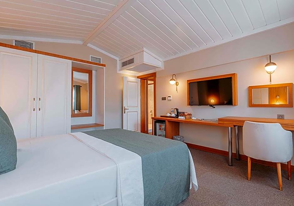 Room options span a wide range, from compact studios and economy doubles to family-friendly layouts and numerous suites. Notable choices include a Double Room with a Sea View, a Kisilik Twin at 269 square feet, a 484-square-foot Suite with 2 Bedrooms, and a 431-square-foot Honeymoon Suite. Other available layouts include Budget and Economy Doubles, Deluxe and Deluxe Suites, Superior Suites, Family Rooms, and more, all designed for different group sizes. All accommodations are non-smoking and ready for a comfortable stay.