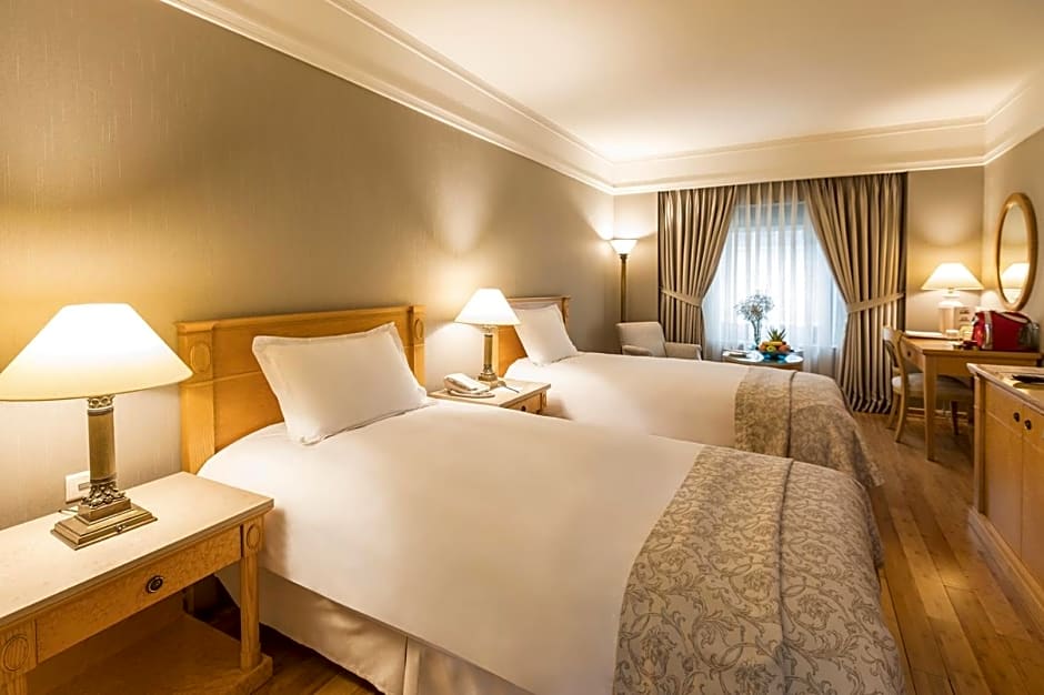The Zorlu Grand Hotel Trabzon offers a variety of room types including suites, doubles, twins, triples, and family rooms. Smoking is not allowed in any of the rooms. The bed sizes range from double to queen to king, with some rooms also having a sofa bed. The room sizes vary from 258 sqft to 2325 sqft. Occupancy ranges from 2 adults in the Economy Double or Twin Room to 6 adults in the Presidential Suite.