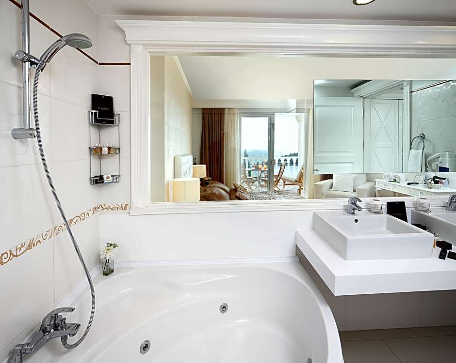 Outdoor and indoor pools offer something for every mood: a seasonal outdoor pool for adults only, an all-season indoor pool with a view, and a second indoor pool that is seasonal and heated with a view. A private beach area with chairs, loungers, and umbrellas adds to the sun-drenched setting, while practical extras include private parking, free wifi, and a 24-hour front desk. Tennis is complimentary, live music is free, and wellness packages plus spa facilities—Turkish bath, sauna, steam room, hot tub—provide plenty of relaxation; airport or shuttle transfers are available for extra charges, and business facilities are available for meetings or banquets at additional cost.