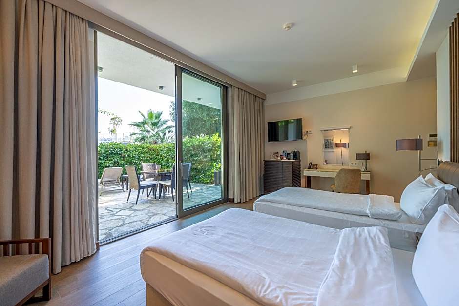 Featuring a spacious bathroom, this deluxe room offers a large double bed or two single beds with views of Yalikavak Bay. The extra space and technological gadgets in this luxurious hotel room make it a comfortable setting for your luxury holiday. There is a desk, walk in wardrobe, ironing facilities, LED TV, high-speed WiFi, mini-bar, coffee machine and pillow menu. You will feel right at ease in the sophisticated ambiance with deluxe service.