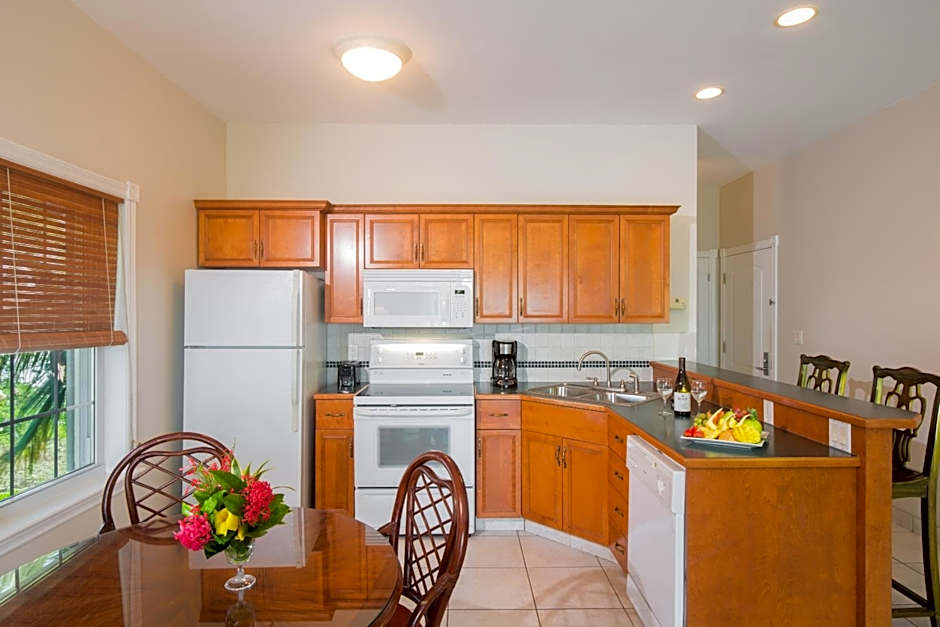 This suite has a balcony, cable TV and washing machine. There is a king-sized bed in the bedroom with a queen pull out sofa bed with fully appointed kitchens with breakfast bar and dining area.