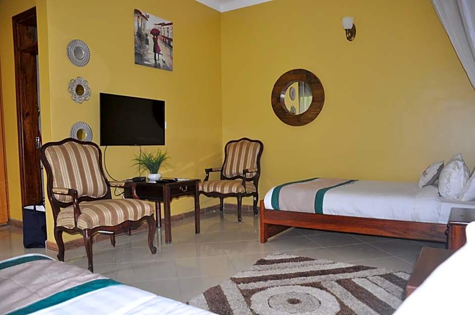 Guests at Home Bliss Uganda can enjoy a variety of leisure amenities. Families can take advantage of the kids' club, kids' meals, and babysitting services, while everyone can enjoy the live music performances. The hotel offers a diverse dining experience at Amy's Kitchen, serving African, American, British, and Italian cuisines, catering to different tastes. For outdoor relaxation, guests can spend time in the garden, sun deck, or on the patio, appreciating the garden view. Additionally, the hotel has a picnic area, ideal for leisurely outdoor dining. There is also a golf course available for those looking to enjoy a round of golf. The presence of a bar adds to the social and leisure options, providing an ideal spot for relaxation and socializing.