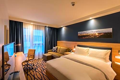 There was some confusion with another Hilton hotel that has signs from the airport terminal and is accessible by foot. The information on the website about the shuttle bus from the hotel to the airport and vice versa could be much clearer. It is mentioned under services, but details about the hours and prices are not easily presented for customers. Since many guests are likely there for an airport connection, this is important information. I had to write an email, and they sent the details to me, which is fine, but not the most convenient way to share such information.