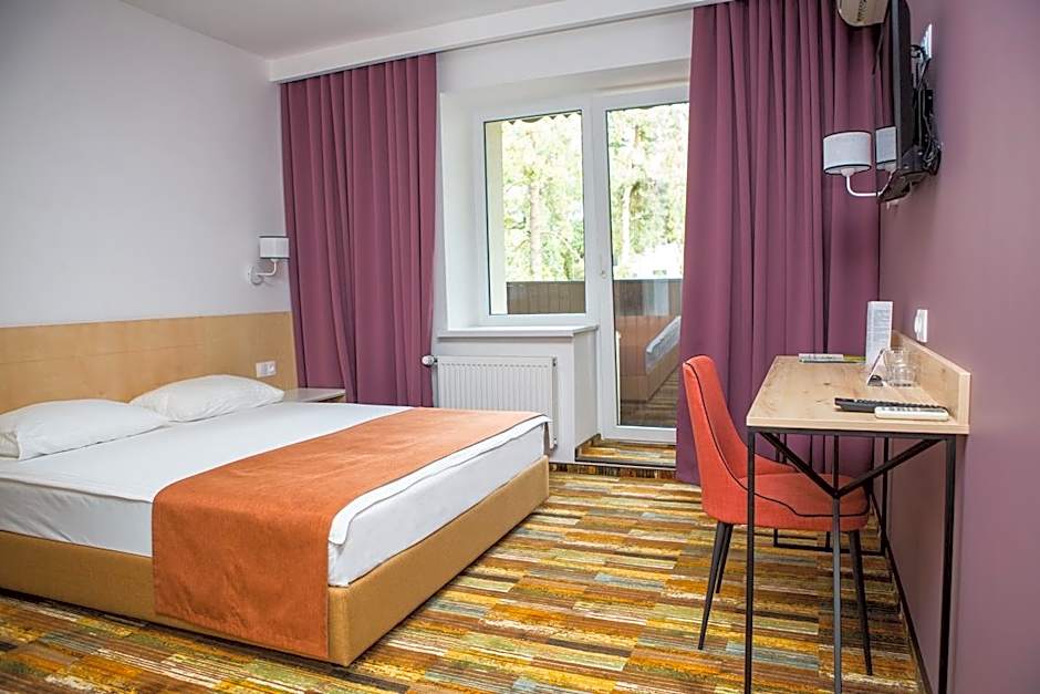 I stayed for the first time in this hotel for 1 night (on business). The room is comfortable, clean and spacious, with the large bathroom and all facilities needed. Hotel's location is great: in the forest, next to the river. Hotel has private parking. Wi-Fi in the room was quite speedy. And the room had two tables and two seats of different height – comfortable to work at.