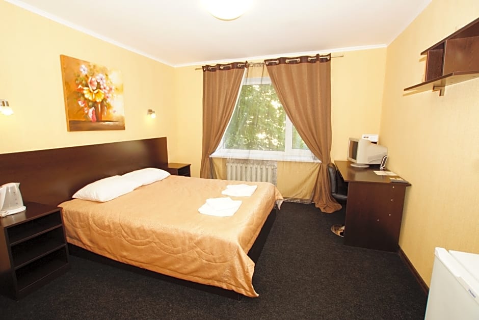 Hotel Nivki is a 3-star hotel in Kyiv, Ukraine, perched about 5.6마일 from the city center. Address: Mrii Str.16-E. Prices start from $20. On-site highlights include free private parking and free WiFi, plus air conditioning, soundproof rooms, and non-smoking accommodations. Balcony access and extra-long beds (more than 6.5 ft) add a touch of comfort, while an elevator serves upper floors.